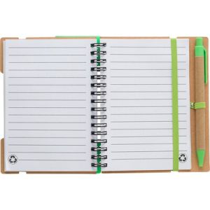 Marque-pages élastique, stylo bille, règle, 125 notes autocollantes et reliure à spirale.