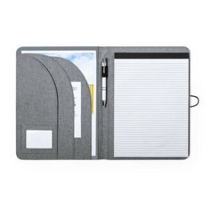Carnet de notes (20 feuilles lignées, impression recto), fermeture élastique, 3 compartiments, porte-cartes et porte-stylo.