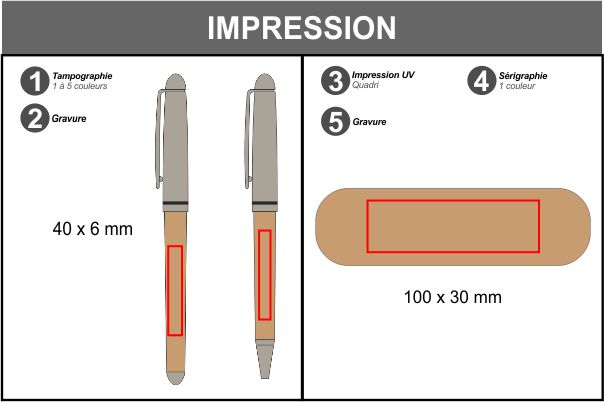 Set d'écriture stylo à bille et stylo à bille roulante en bambou et métal.