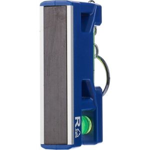 Indication de taille sur le dessus, niveau à bulle, règle, bande magnétique au bas pour fixation sur surfaces métalliques.