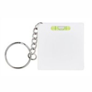 Porte-clés mètre-ruban 1 mètre et niveau à bulle en plastique et métal.