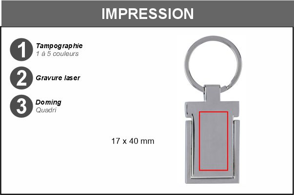 Porte-clés rectangulaire en alliage de zinc.