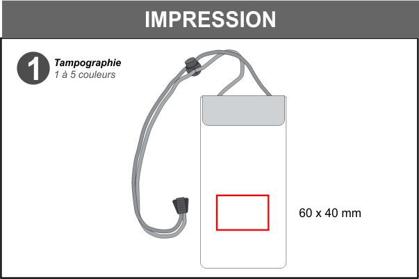 Pochette étanche pour appareils mobiles jusqu'à 6,5", avec cordon.