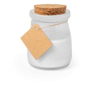 Bougie parfumée dans pôt en verre et couvercle en liège.