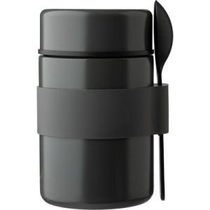 Avec cuillère et poignée en silicone assortie à la couleur du récipient.