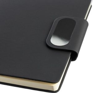 Un cahier de 80 pages lignées (70 grs/m²) avec fermeture magnétique, plaque gravée et ruban marque-page.